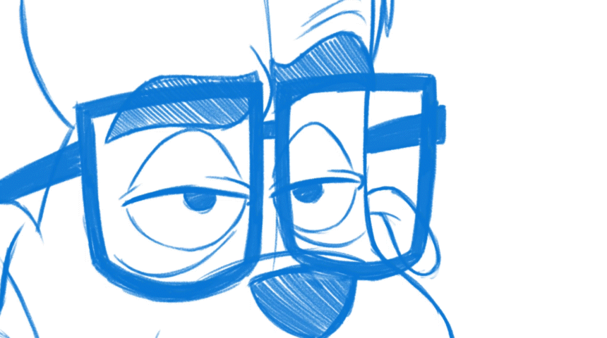 She dug up vintage studio gag drawings to demonstrate how animators historically caricatured Jeffrey’s stature, insisting: “You have to make him really short.” We followed her lead and pushed the design way shorter, unlocking the comedy for the rest of his sequences.